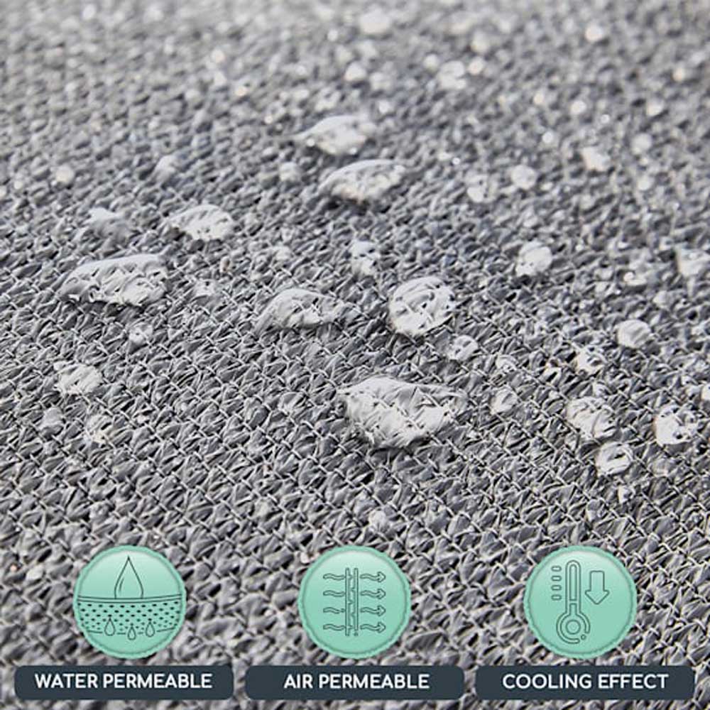 Zahvaljujoč obročkom iz nerjavečega jekla je pritrjevanje povsem enostavno. Preprosto potegnite vrvi za pritrdilne obroče in jih pritrdite po želji. Za trajno pritrditev namesto vrvi priporočamo uporabo vpenjalnih kljuk ali vponk. Zahvaljujoč trdnemu poliestrskemu materialu, ki je odporen na trganje, lahko senčno ponjavo močno in naravnost zategnete. Poleg tega je material zelo zračen, zato se toplota ne kopiči pod streho. Ponjava ščiti pred dežjem, poleg tega pa je zaradi trpežnega materiala, kakovostne izdelave in dvojnega šiva zelo trpežna.