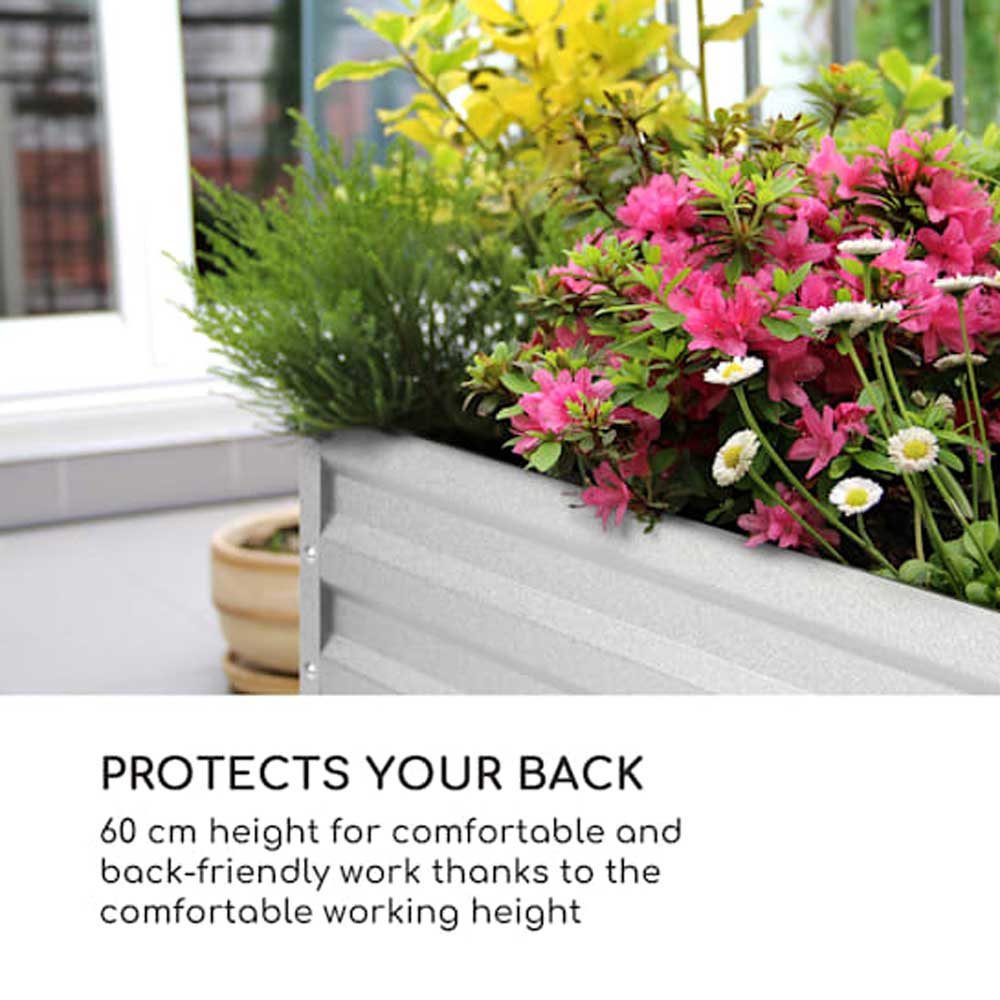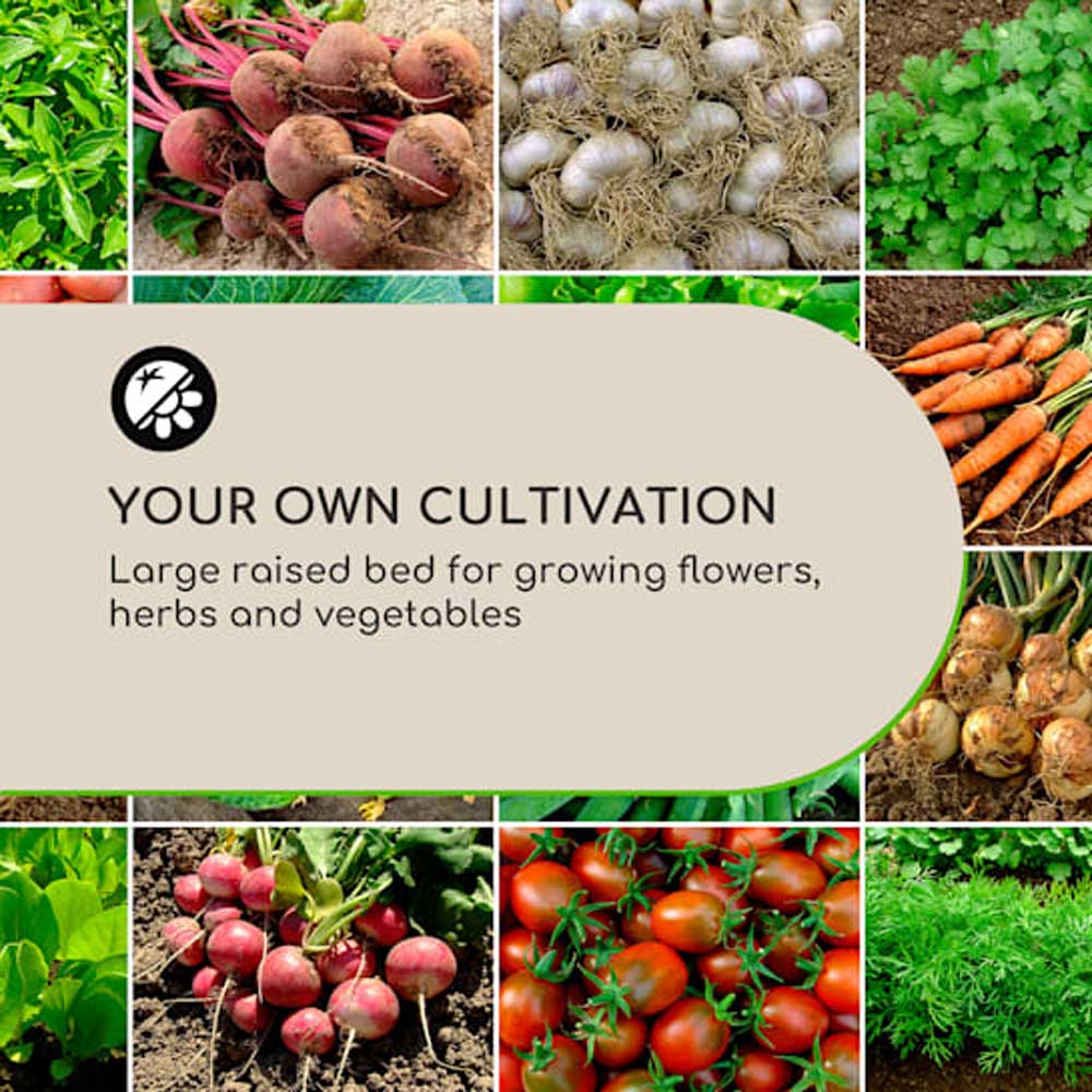 Pisano zadovoljstvo in zdrava živila: z visoko gredo Blumfeldt Grow Straight boste dosegli optimalne pogoje za rast. Slednje omogoča bistveno več pridelka, kot gojenje rastlin na tleh. Vrtnarji bodo izredno zadovoljni z ugodjem pri svojem delu, saj bo zaščiten njihov hrbet. Delovna višina 60 cm predstavlja tudi naravno oviro škodljivcem, kot so na primer polži. Prostornina 600 litrov omogoča, da rastline v visoki gredi pognojite s humusom v več plasteh, tako da jo lahko takoj uporabite kot kompostnik. Med bio odpadke preprosto zmešajte zemljo in ustvarili boste ustrezno vlažno okolje za rast svežih pridelkov.