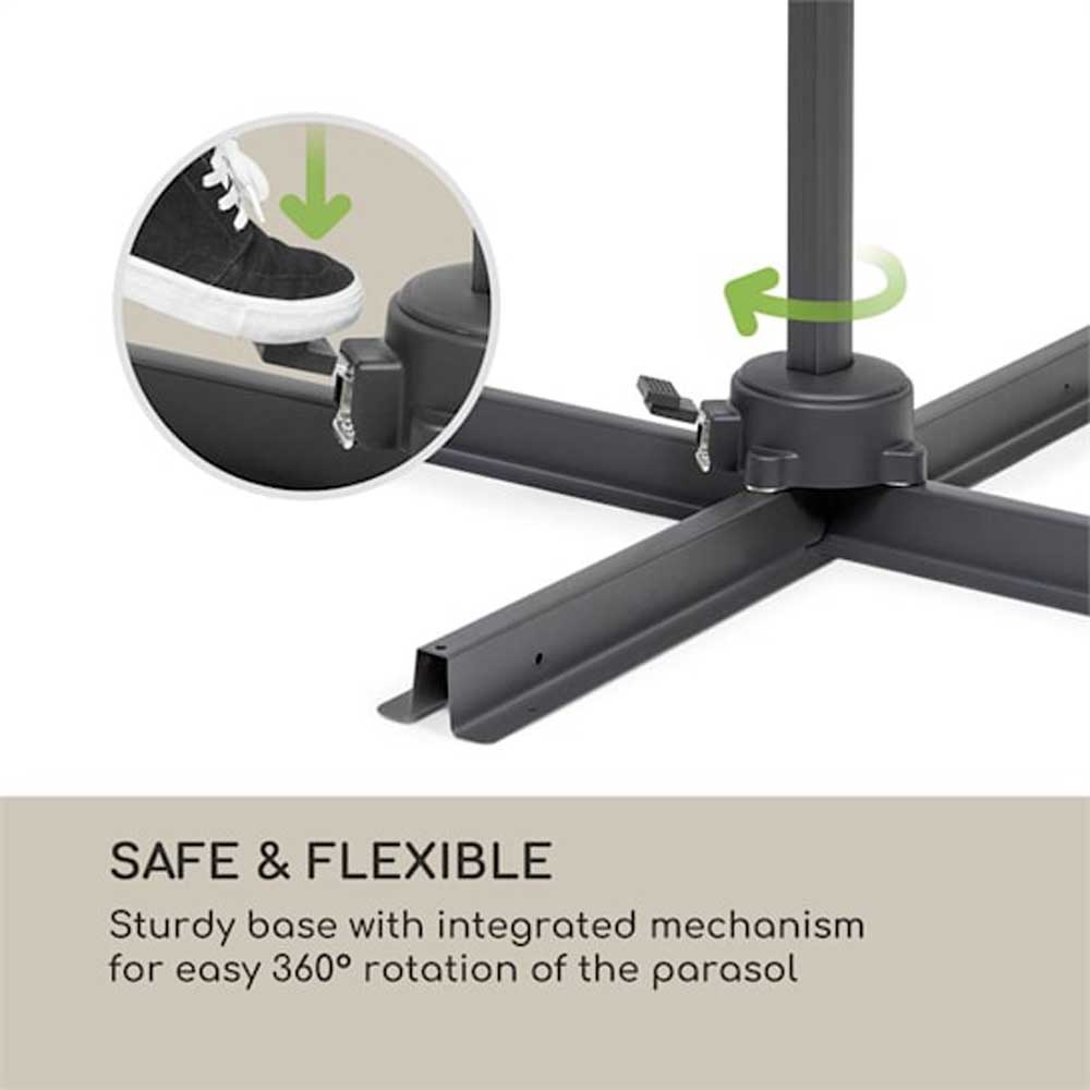 Pomembna zaščita pred soncem! Fleksibilno uporaben senčnik Belo Horizonte od podjetja Blumfeldt je zanimiv s svojo funkcijo rotacije za 360°, veliko streho proti soncu z UV zaščito 30+ in robustno aluminijasto cevjo.