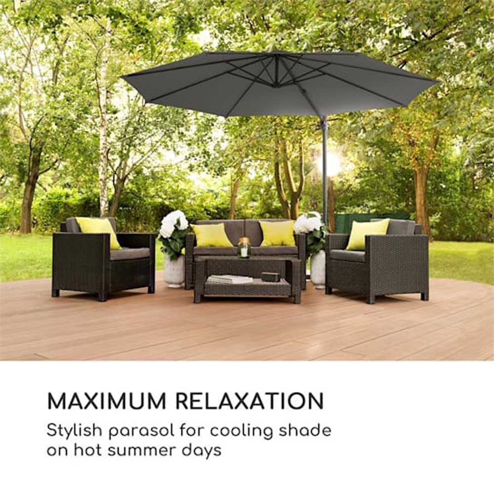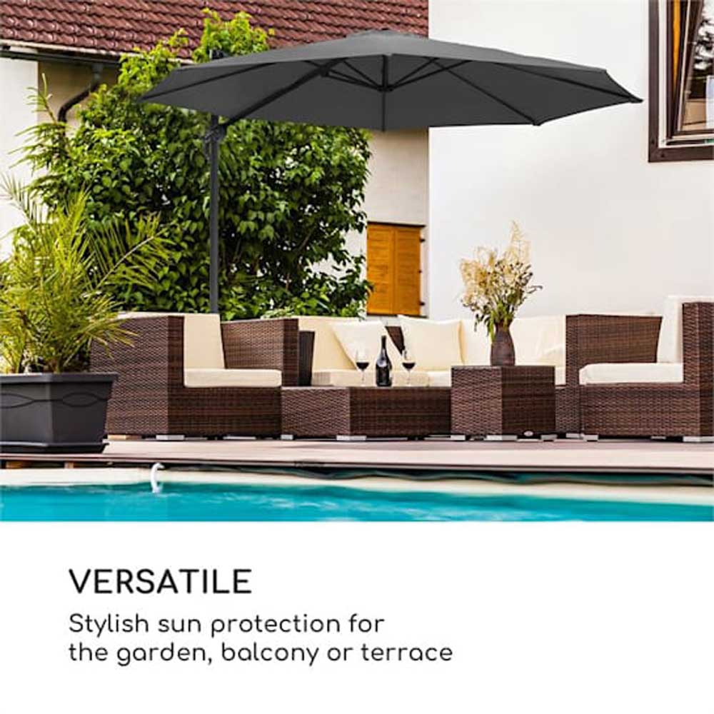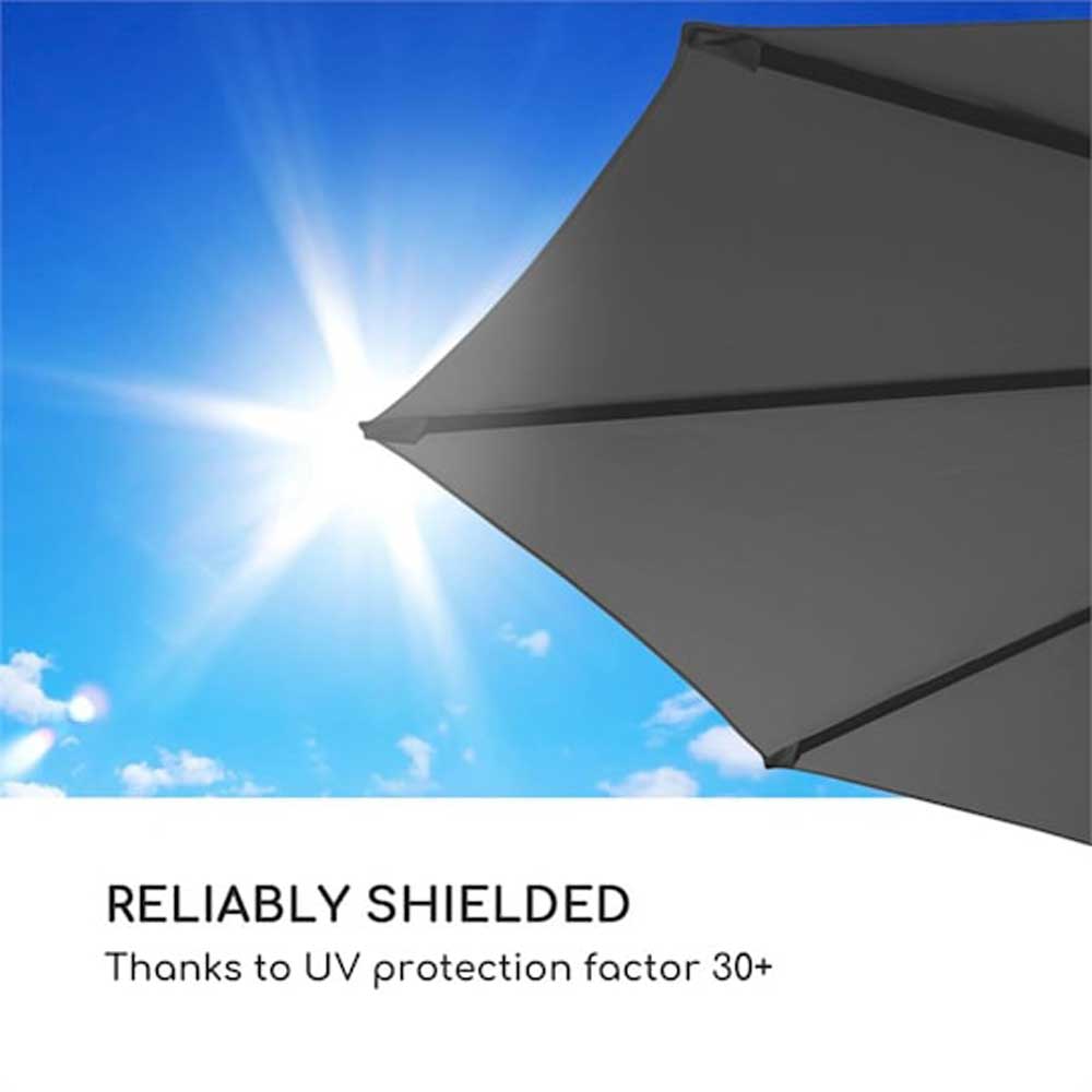 Pomembna zaščita pred soncem! Fleksibilno uporaben senčnik Belo Horizonte od podjetja Blumfeldt je zanimiv s svojo funkcijo rotacije za 360°, veliko streho proti soncu z UV zaščito 30+ in robustno aluminijasto cevjo.