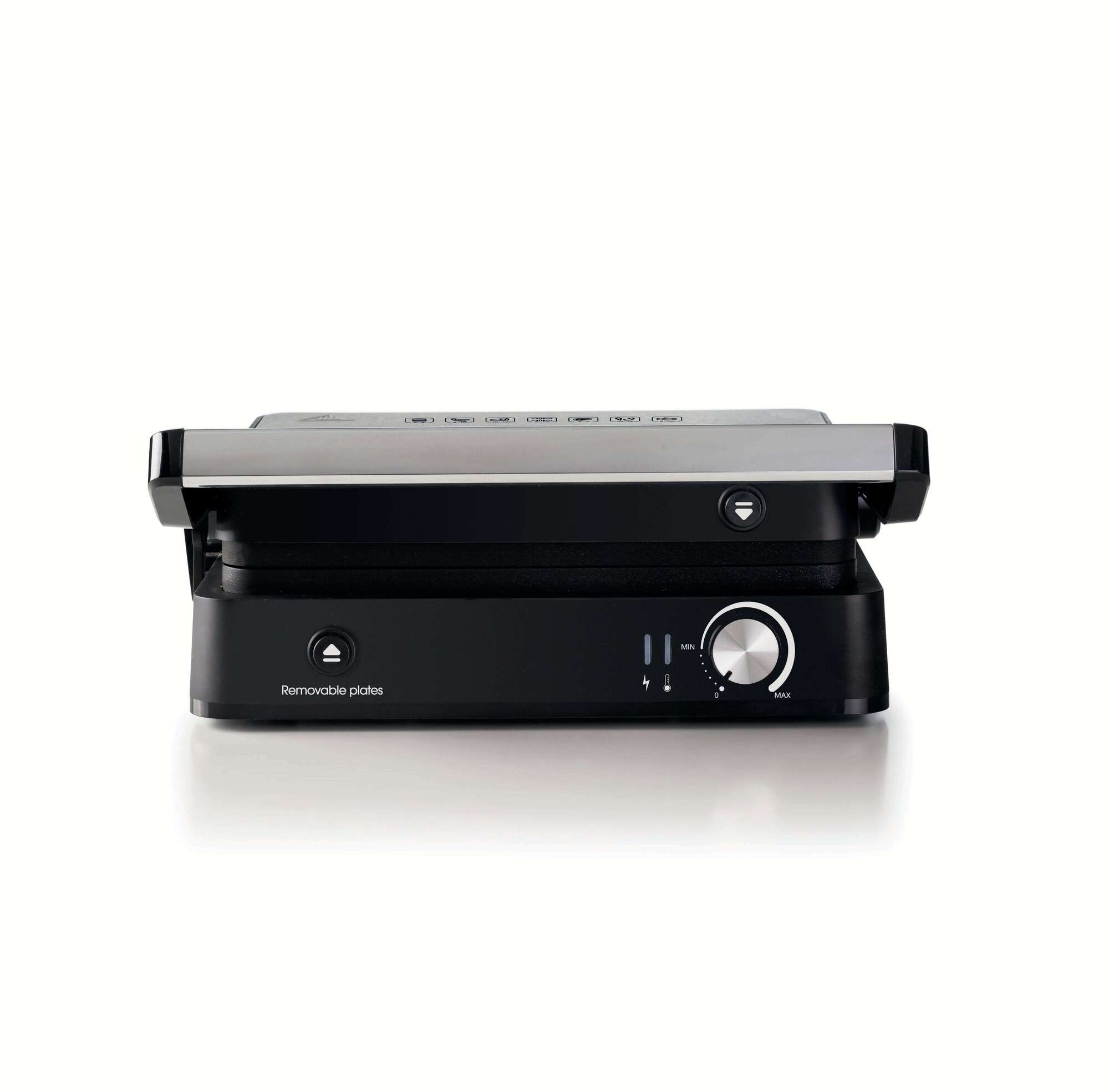 Električni žar z 2000 W moči in 3 načini kuhanja: stik (contact), pečica (oven) in odprta plošča na 180°.