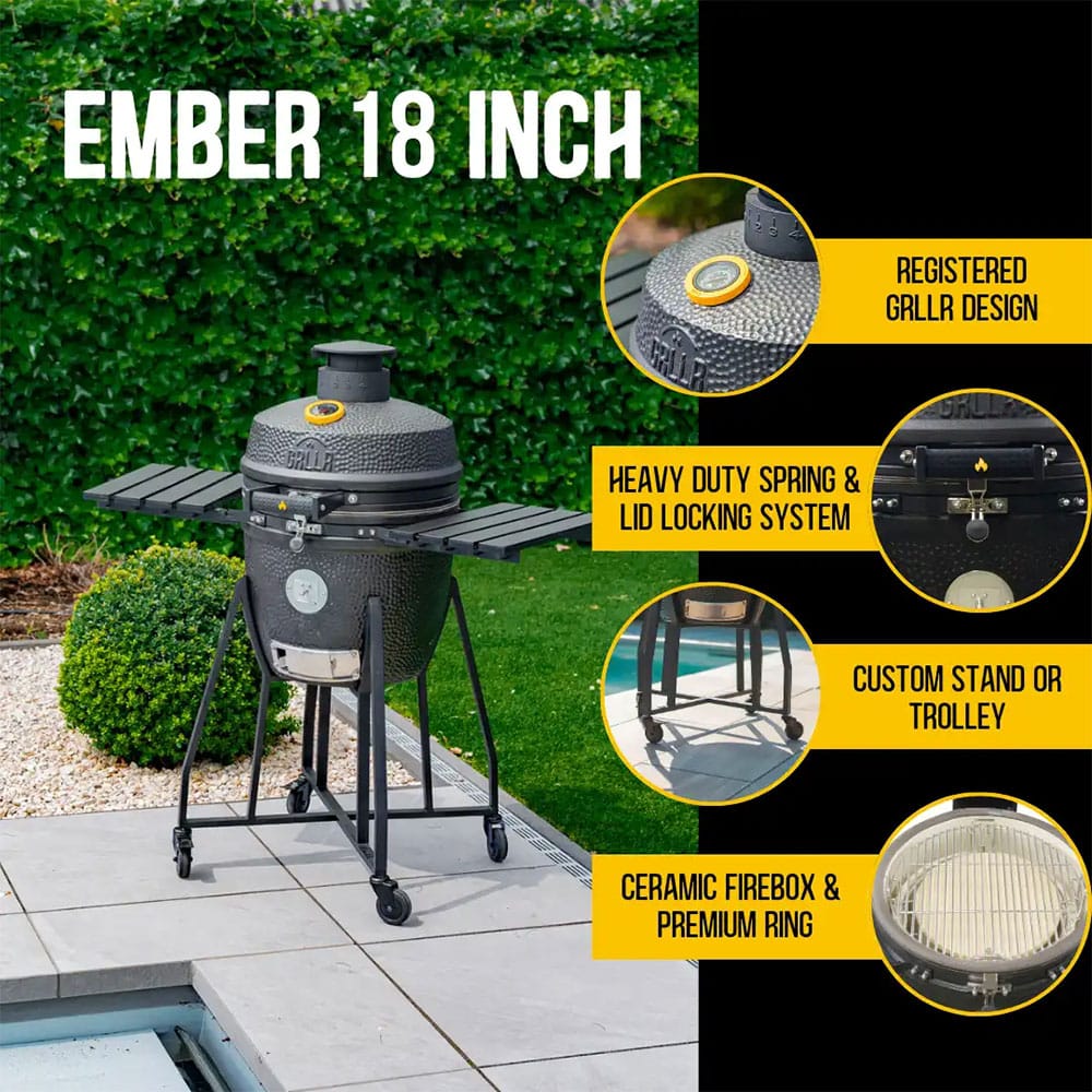 GRLLR Ember Kamado Classic 18″ Built In – Matt Black je idealen za gostitelje velikih srečanj ali intimnih večerij na prostem. Omogoča širok spekter kulinaričnih tehnik in zagotavlja popolne kulinarične rezultate, ne glede na to, ali pripravljate počasno pečeno meso, sočne stejke ali hrustljave pice. Ta žar bo zagotovo postal osrednji del vaše zunanje kuhinje, prinašajoč vrhunsko zmogljivost in eleganten dizajn.