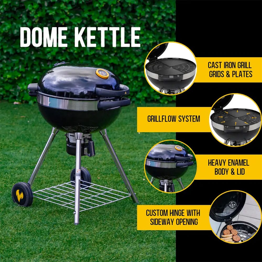 GRLLR Dome Kettle je vrhunski žar, ustvarjen za nepozabne kulinarične užitke na prostem. S svojo prostorno kuhalno površino in profesionalnimi rešetkami omogoča enakomerno porazdelitev toplote ter zagotavlja popolno pečenje vsake jedi.