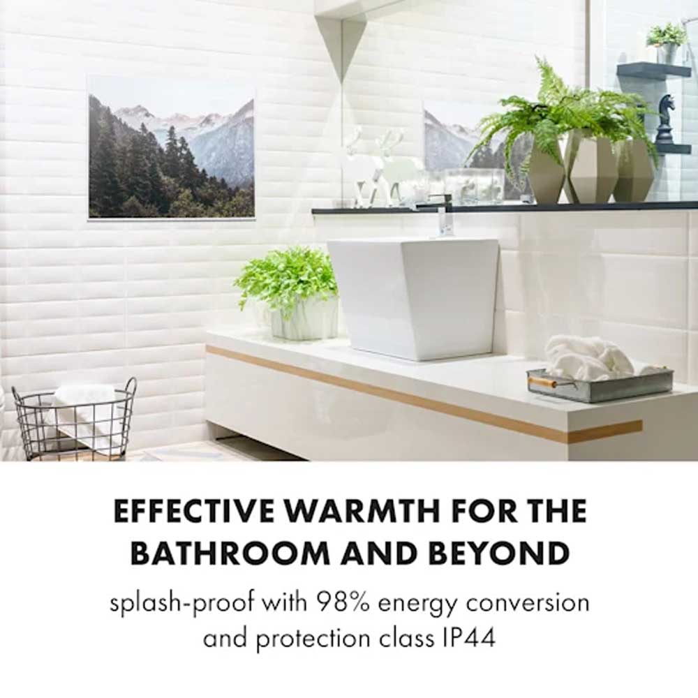 - Efektiven vir toplote ne samo v kopalnici: vodoodporna tehnologija z 98-odstotno učinkovitostjo pretvorbe energije in zaščitnim razredom IP44