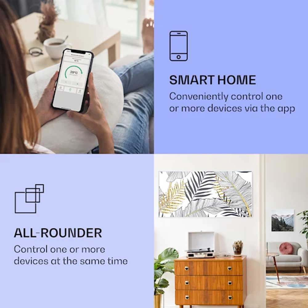 Zdaj so grelci še pametnejši: nove infrardeče grelce Klarstein Wonderwall Air Art Smart lahko povežete v lokalno mrežo WiFi in jih upravljate na daljavo od koderkoli z aplikacijo Klarstein App Experience. Pametnega telefona ali tablice sploh ni potrebno prijeti v roke, kajti z integriranim glasovnim upravljanjem lahko pošiljate ukaze enemu ali tudi več napravam istočasno preko Alexy ali Google. Grelno ploščo lahko seveda upravljate tudi ročno in neposredno na napravi.