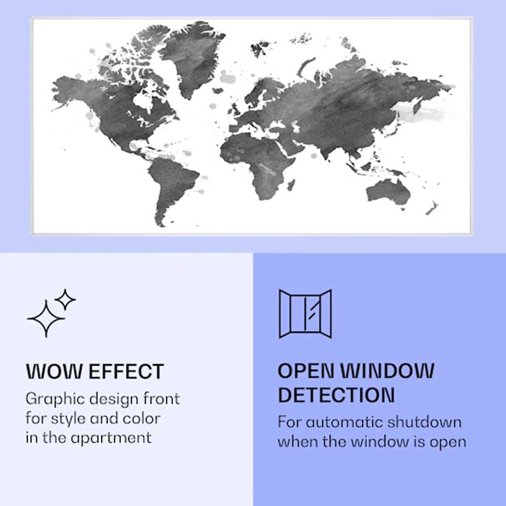IR panel – KLARSTEIN| WONDERWALL – AIR ART 700W SMART, beli zemljevid, 120x60cm
