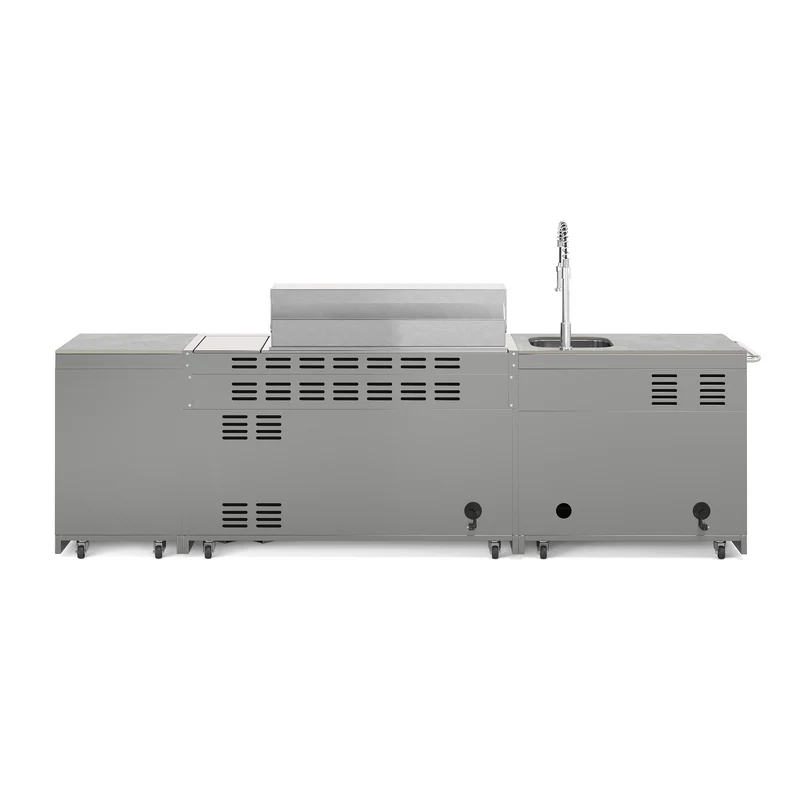 Z združenimi moduli – 8-gorenjskim plinskim žarom, Cool-Clean modulom z umivalnikom in hladilnikom ter Prep modulom za pripravo hrane – omogoča popolno funkcionalnost v enem elegantnem sistemu.