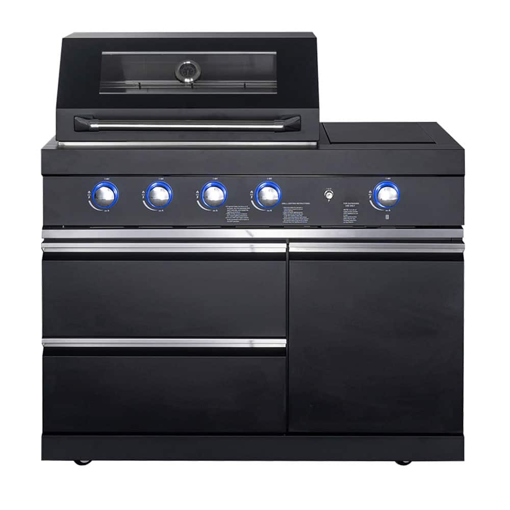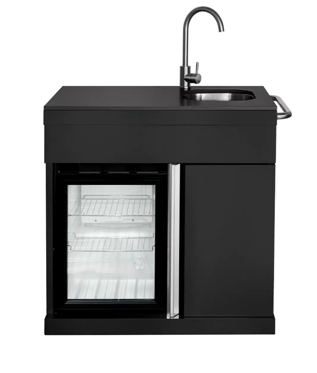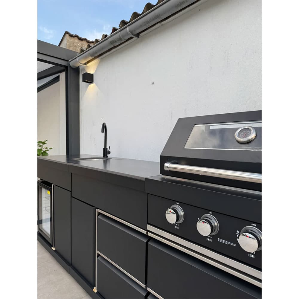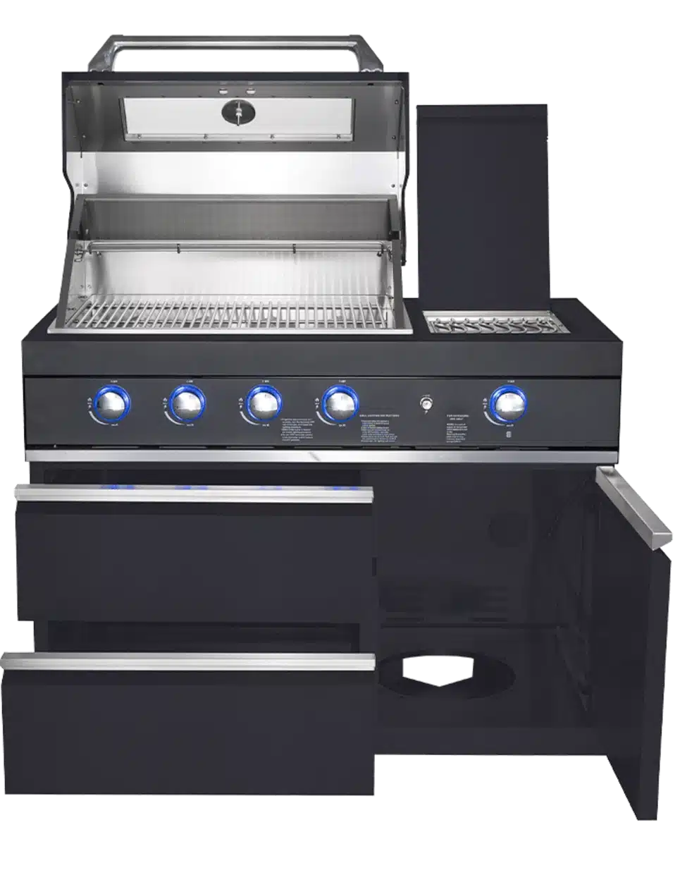 Zunanja kuhinja Freestanding Plus v črni izvedbi združuje eleganco, funkcionalnost in pristni občutek kuhanja na prostem v ameriškem slogu.