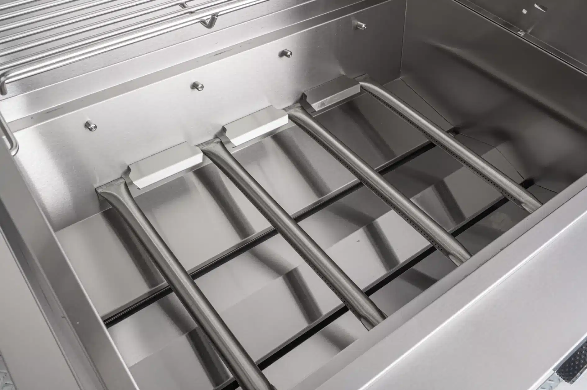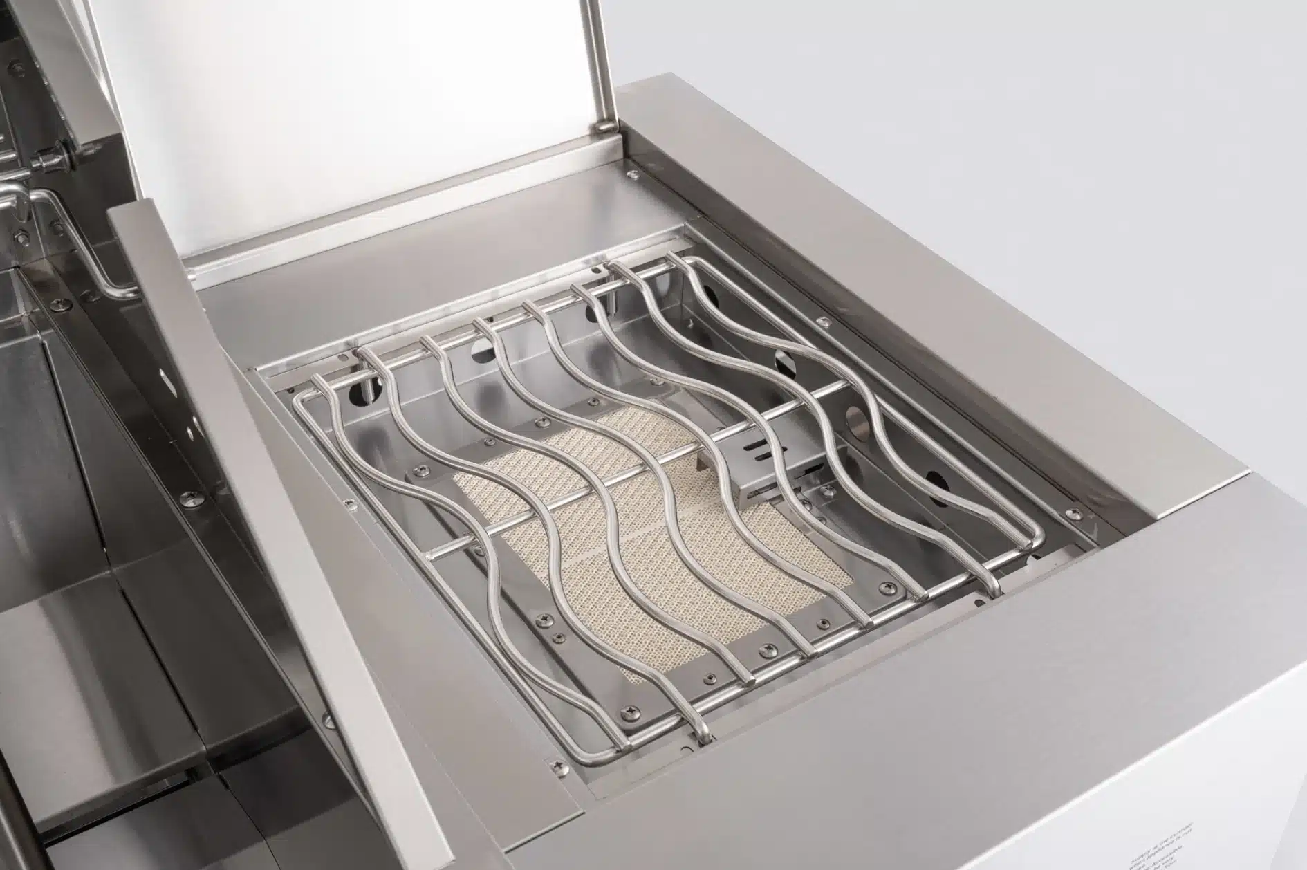 Komplet vključuje velik plinski žar s štirimi učinkoviti gorilniki ter infrardeči stranski gorilnik za hitro pečenje mesa ali zelenjave.