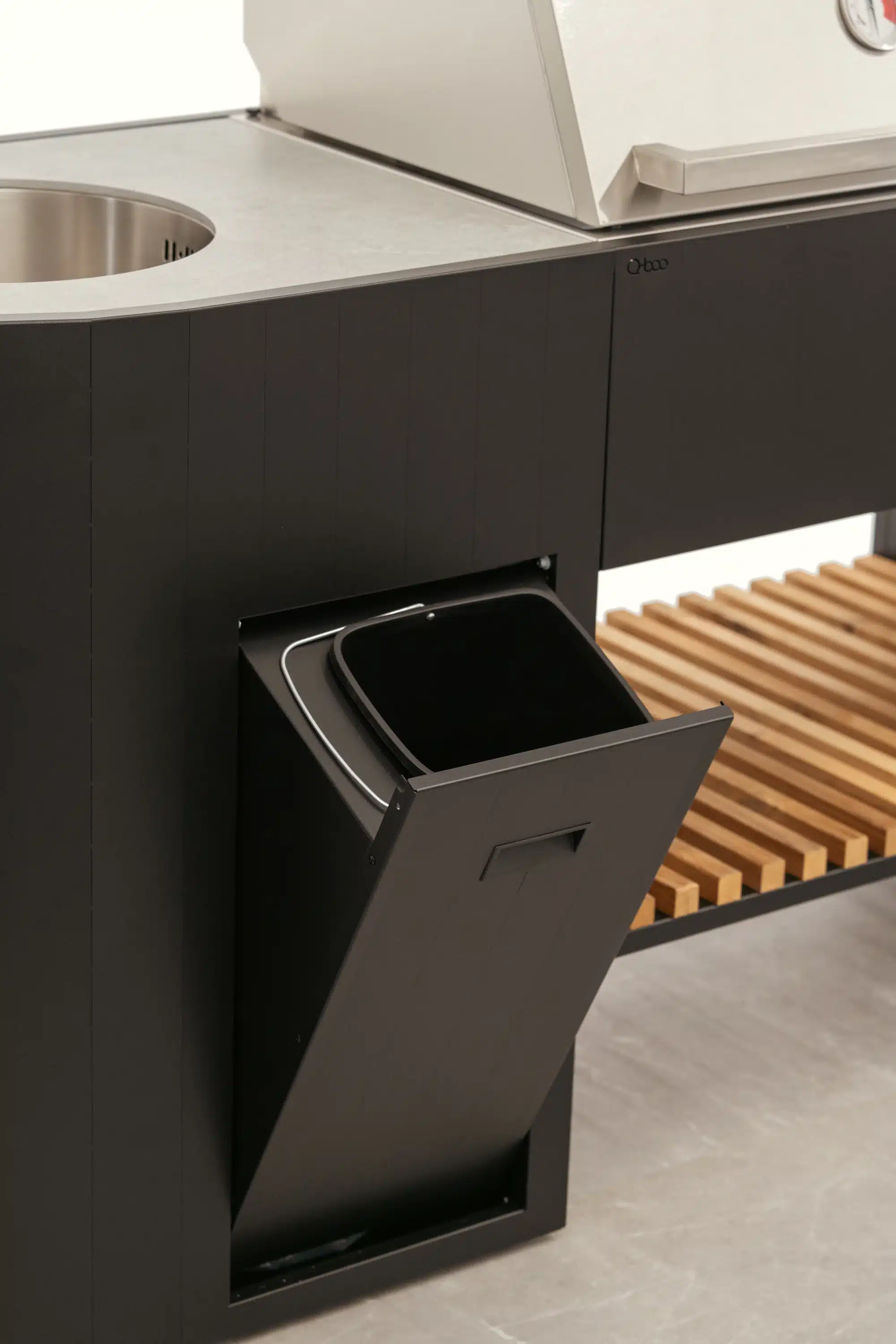 OVO GL je moderna zunanja kuhinja, zasnovana za udobno in funkcionalno pripravo hrane na prostem. Ohišje iz pocinkanega jekla s prašnim premazom zagotavlja visoko odpornost na vremenske vplive, medtem ko delovna plošča iz 8 mm Dekton® materiala nudi izjemno trpežnost, odpornost na praske in toploto.