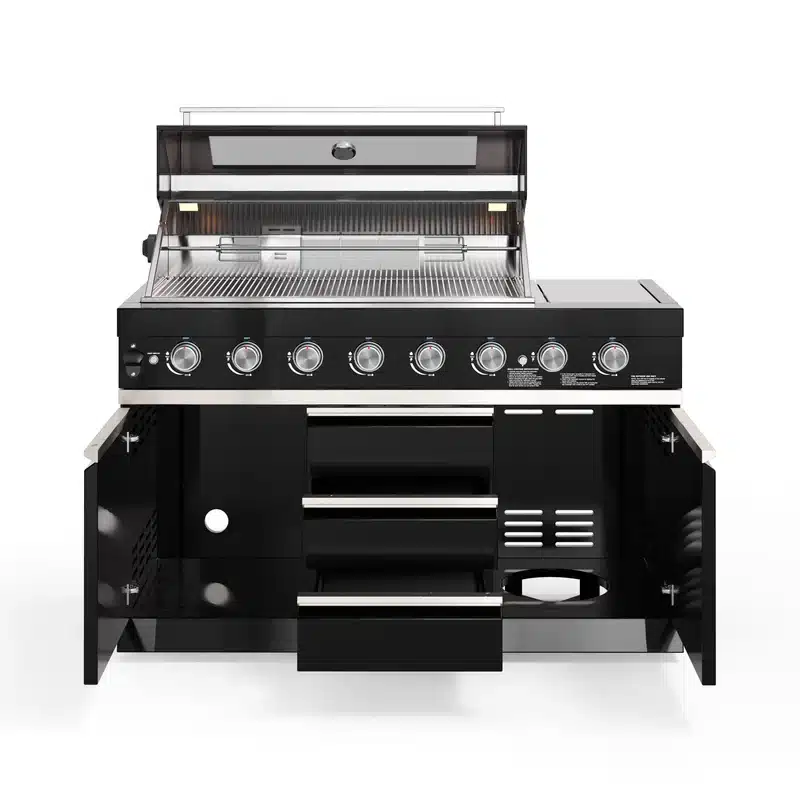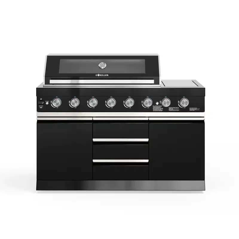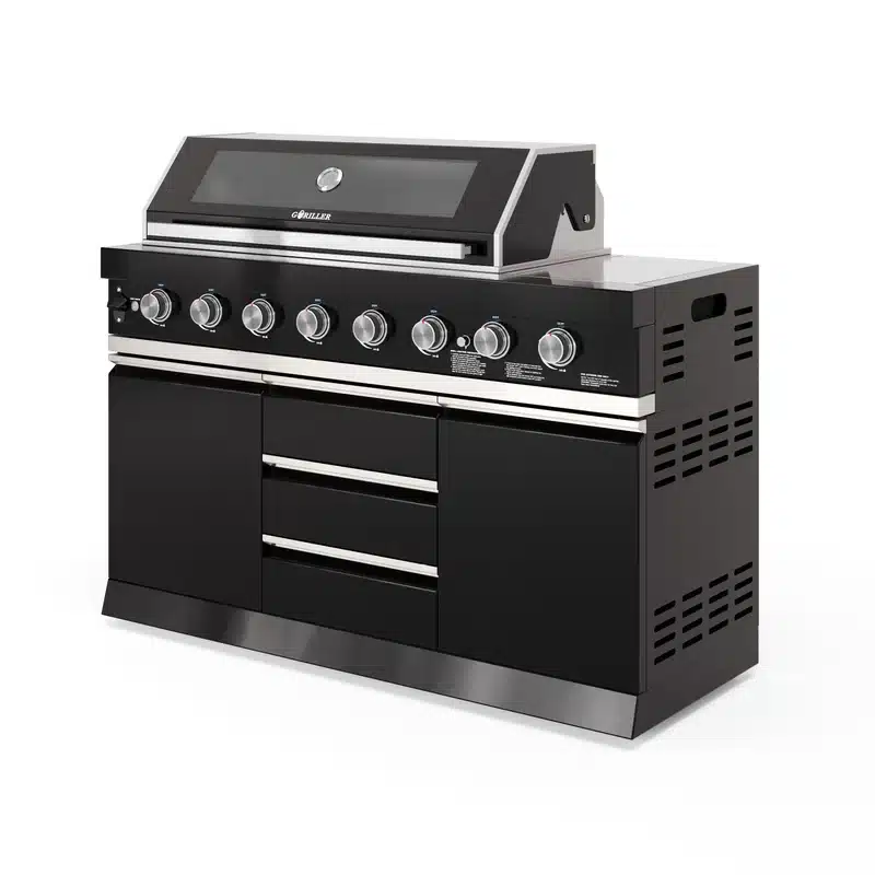 BLACKBACK plinski žar z 6 ali 8 gorilniki, infrardečo Sizzle-Zone do 800 °C, zadnjim gorilnikom z rotisserie sistemom ter robustnim pokrovom s steklenim oknom. Profesionalna izbira za vrhunsko peko na prostem.