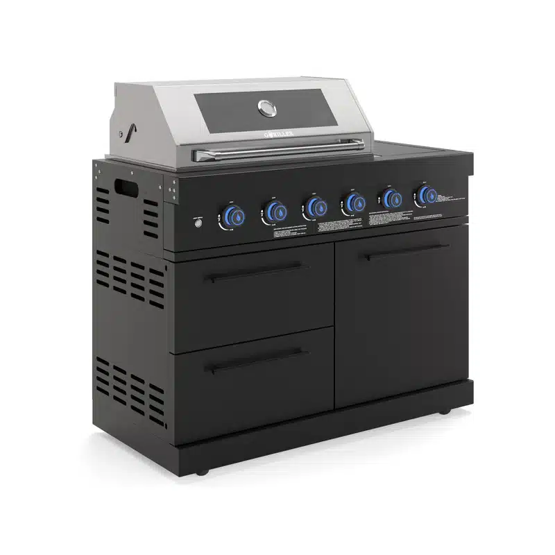 Profesionalni EMPIRE plinski žar z 6 ali 8 gorilniki, infrardečo Sizzle-Zone do 800 °C, stranskim gorilnikom in rotisserie sistemom. Zmogljiva rešitev za vrhunsko peko na prostem.
