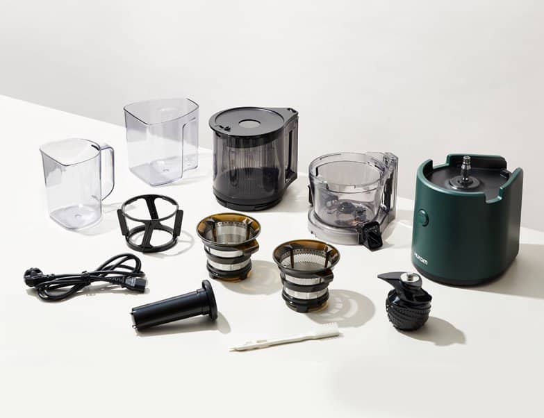 Kot vsi počasni sokovniki Hurom je tudi model H400 izdelan izključno iz materialov brez BPA. - Odvisno od modela in datuma izdelave se lahko oblika in komponente nekoliko razlikujejo in se lahko razlikujejo od videza, prikazanega na sliki.