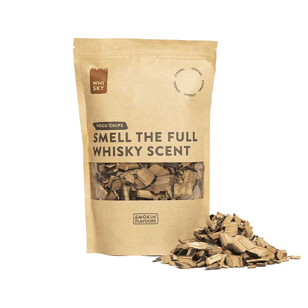 Ko odprete embalažo, takoj začutite poln vonj viskija! Viski je destiliran iz fermentirane žitne kaše in leta staran v hrastovih sodih, kar oddaja močan okus. Čips je primeren za vroče dimljenje v vašem žaru na oglje ali plinu. Uporabite kadilnico ali vrzite pest sekancev (po možnosti namočenih v tekočino) v oglje.