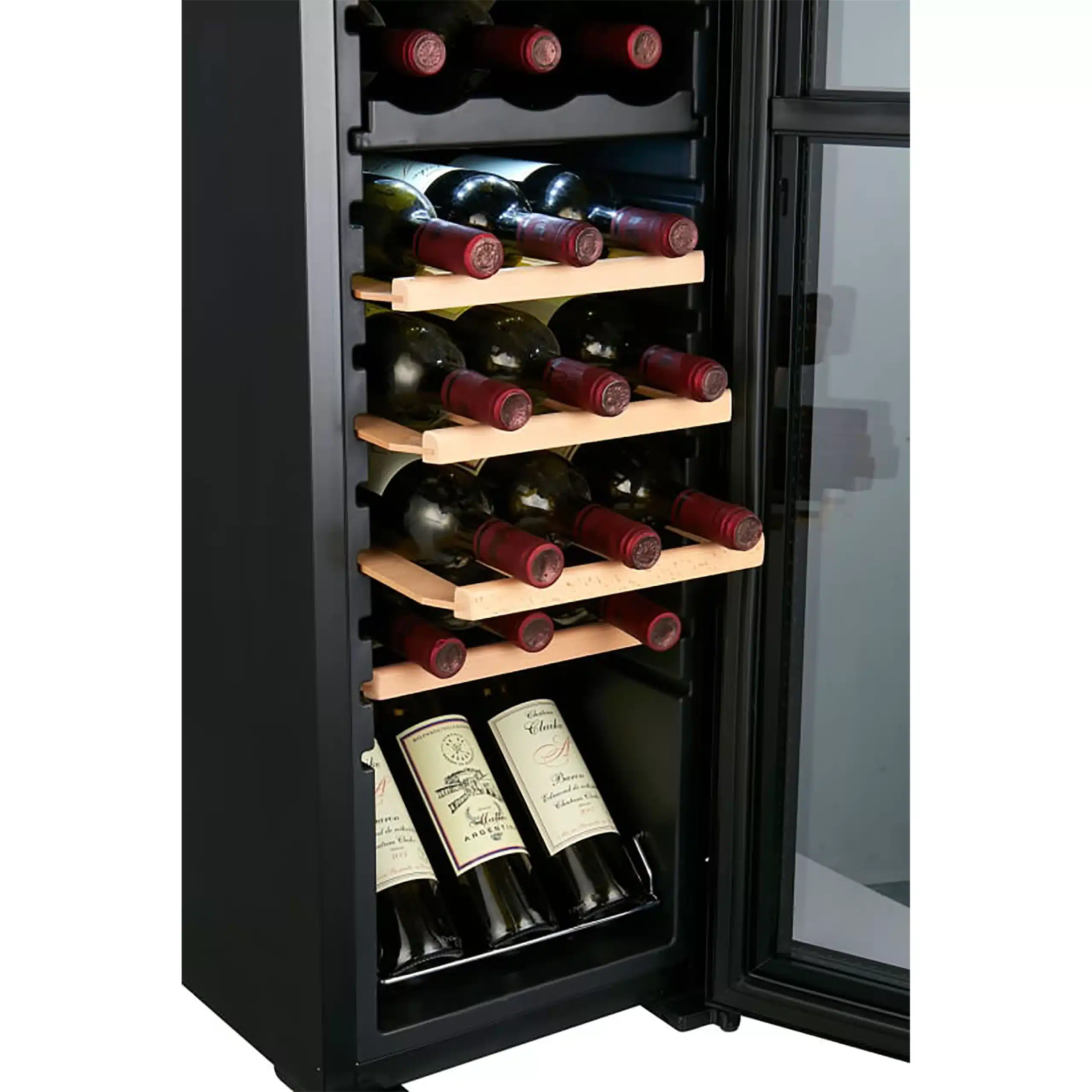 Samostoječa dvoconska vinska vitrina za do 27 steklenic z UV zaščito.