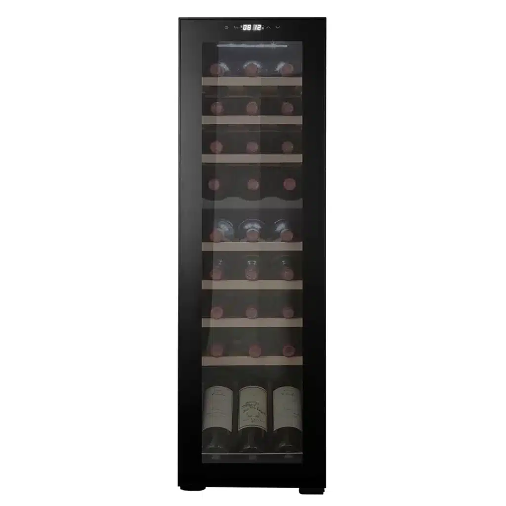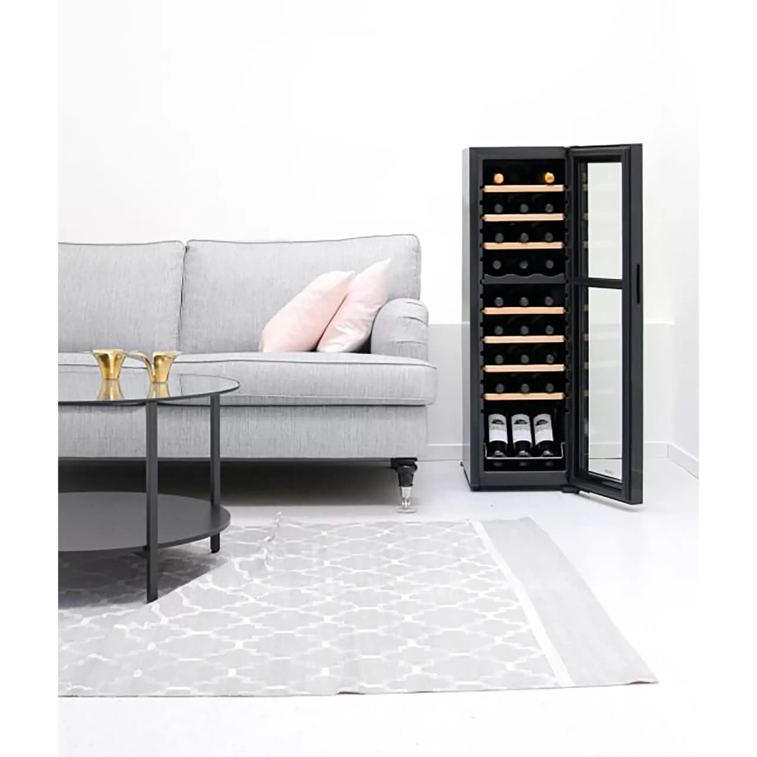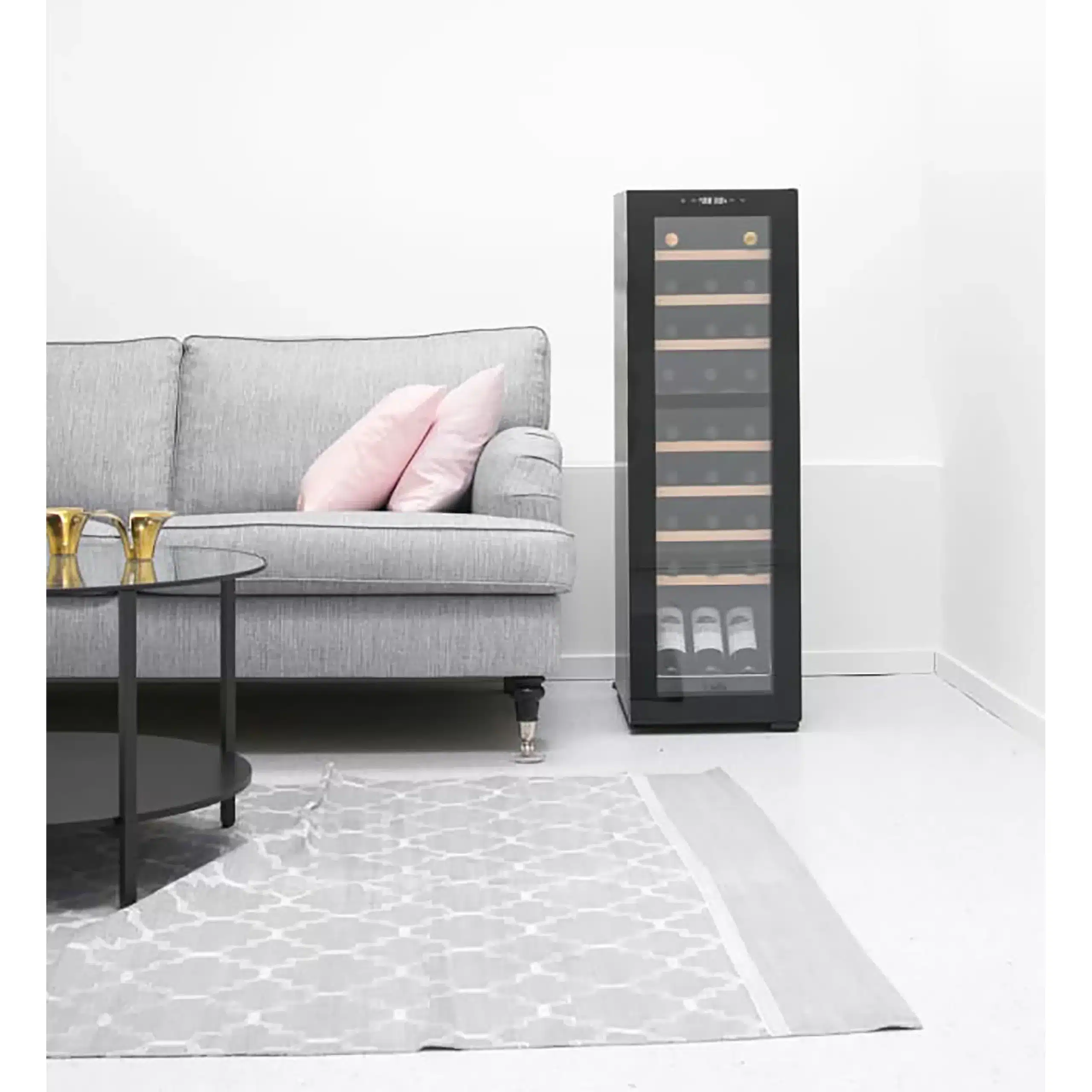Cavin NC-27B je elegantna samostoječa vinska vitrina, zasnovana za manjše in srednje vinske zbirke. Z dvema temperaturnima conama, črnimi UV-zaščitenimi vrati in kompresorskim hlajenjem ponuja zanesljive pogoje za hrambo belih, rdečih in penin – vse v kompaktni in vizualno privlačni obliki.