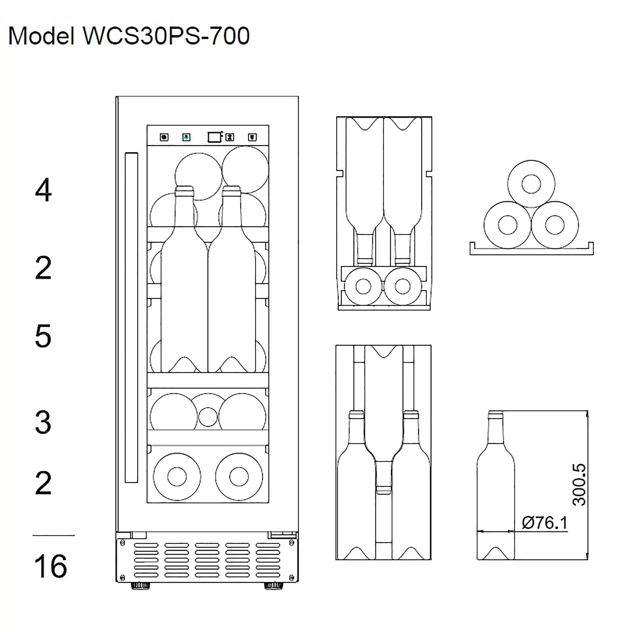 Vinska vitrina – mQuvée | WCS30ABPS-700, 14 steklenic, 1 cona, 30 cm