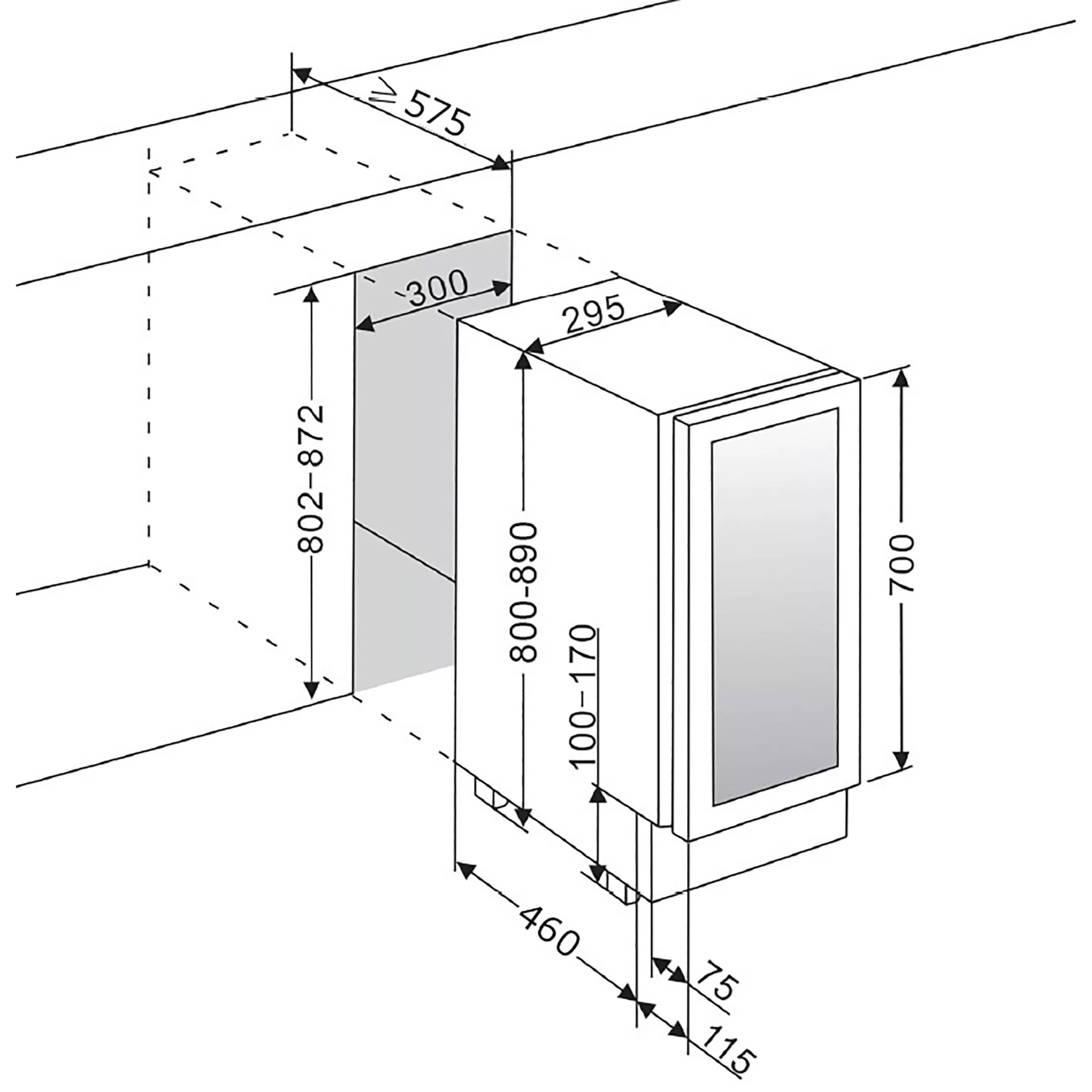 mQuvée WCS30ABPS-700 je podpultno vgradna vinska vitrina, primerna za: