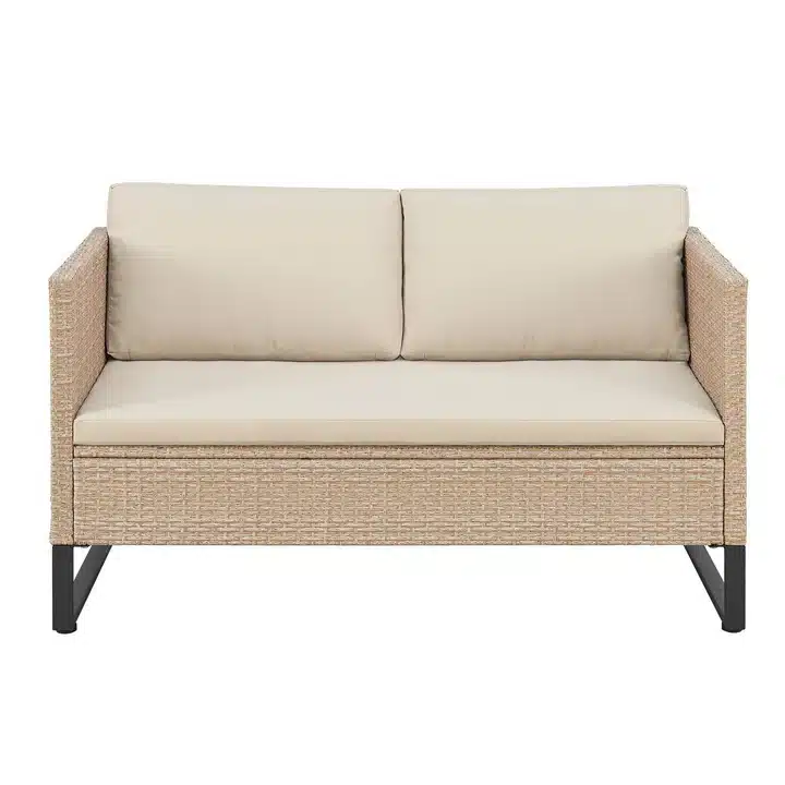 Ustvarite svoj popoln zunanji kotiček z moderno modularno lounge garnituro za 4 osebe. Set vključuje dve klopi, priročno škatlo za shranjevanje blazin in klubsko mizico s stekleno ploščo. S svojo prilagodljivo zasnovo, trpežnimi materiali in udobnimi blazinami ta garnitura združuje funkcionalnost, stil in dolgotrajno kakovost.