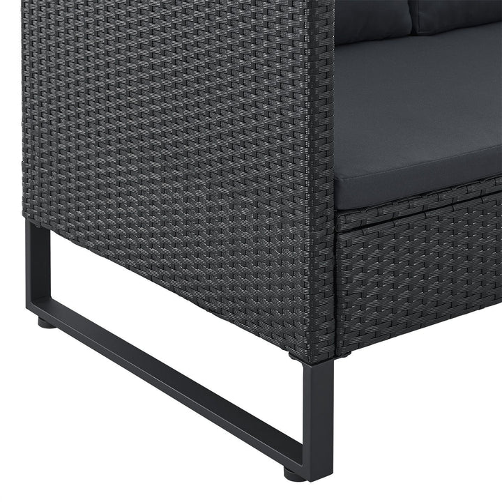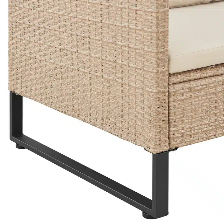 Trpežno polyrattan pletenje, odporno na vremenske vplive.