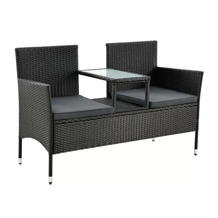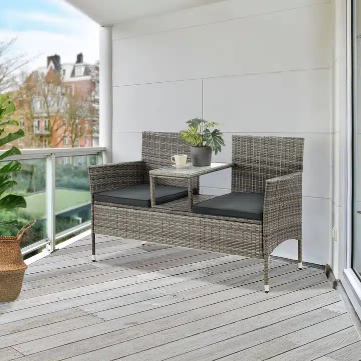 2-sedežna poliuterantska klop z integrirano mizico je popolna izbira za balkon, vrt ali teraso.