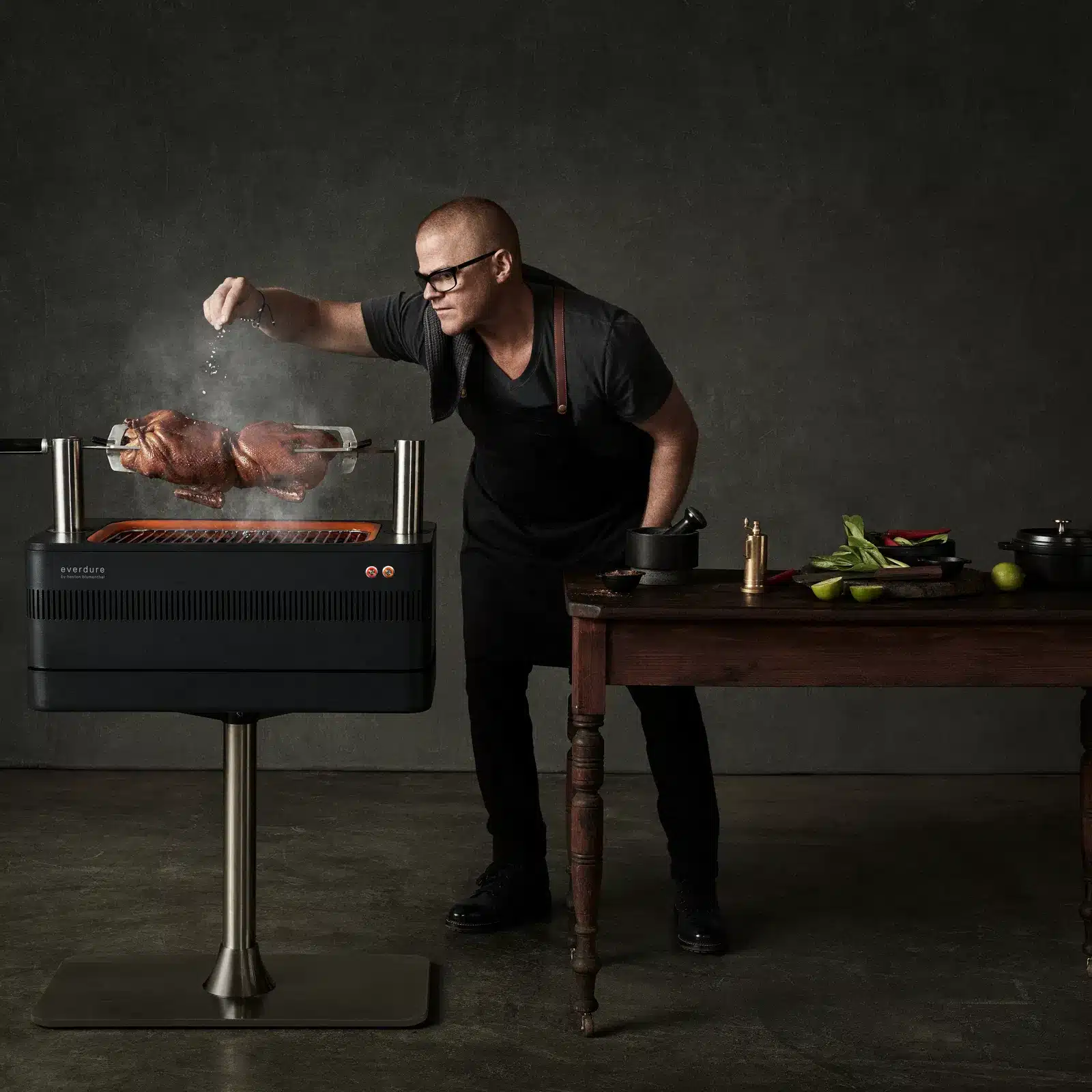 Everdure Fusion – Graphite je vrhunski žar na oglje, ki združuje tradicijo pravega ognja z udobjem sodobne tehnologije. Razvit v sodelovanju s priznanim chefom Hestonom Blumenthalom ponuja izjemno enostavno uporabo, hitro pripravo in vrhunske rezultate – tako za začetnike kot izkušene mojstre peke.