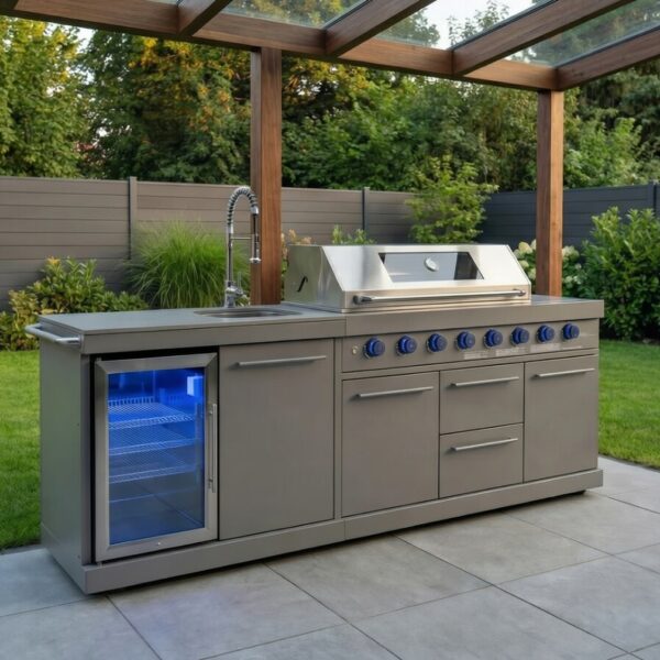 Letna kuhinja | KING, 5-brenerski plinski žar, hladilnik in pomivalni modul